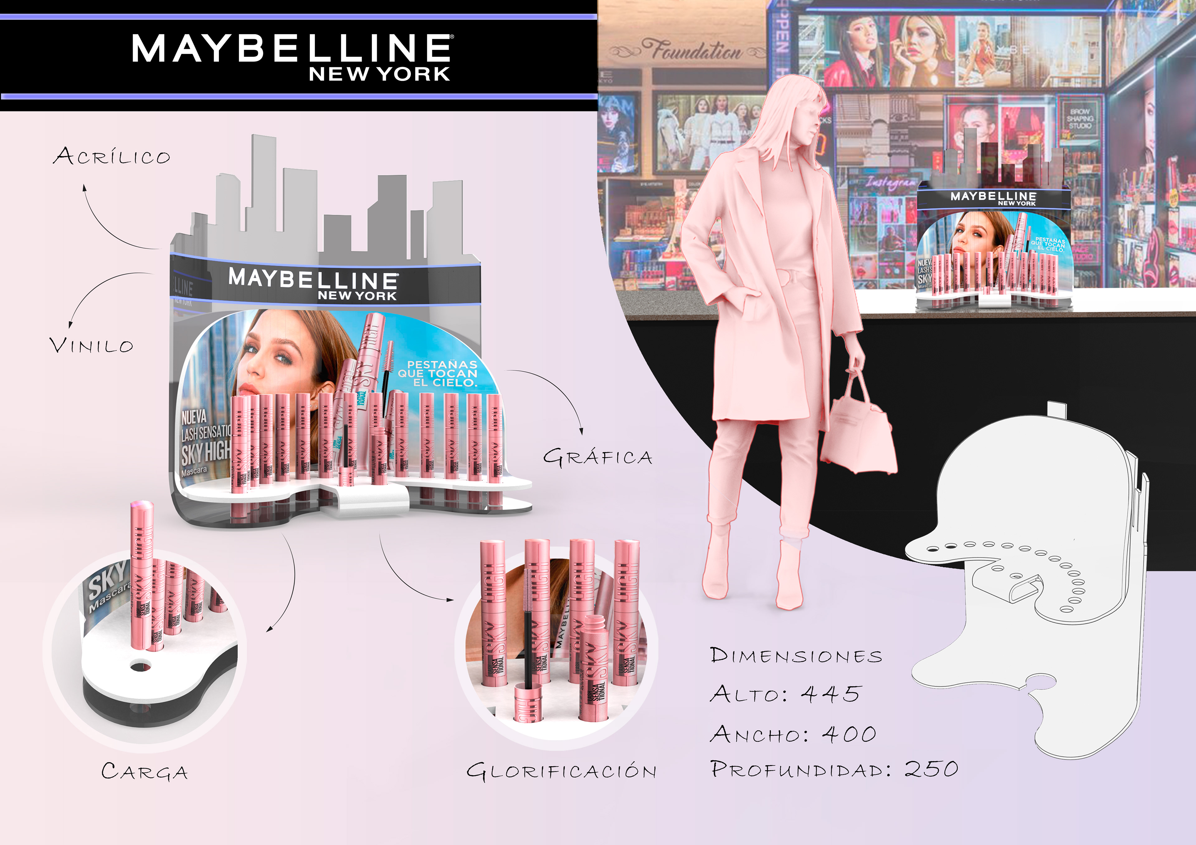 Diseño de exhibidor de mostrador MAYBELLINE